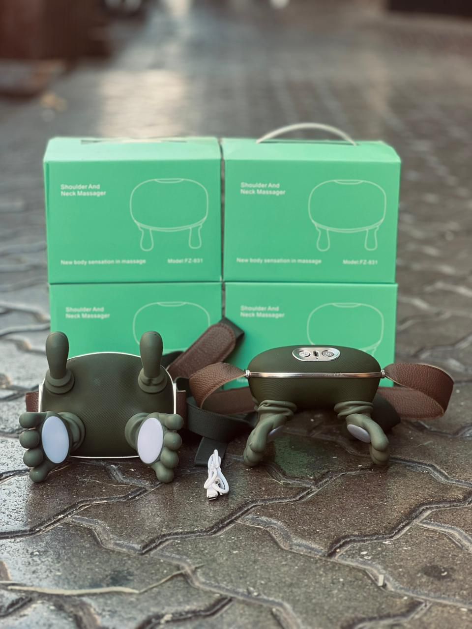 FEATURES • Deep tissue kneading massage for neck and shoulders 💪 • Optional heat function for muscle relaxation 🔥 • Hand style ergonomic design for natural pressure 🤲 • Adjustable intensity for custom comfort ⚙️ • Cordless and rechargeable via USB 🔋 • Soft breathable fabric for skin comfort 🌿 • Suitable for home, office, and travel 🧳 • Helps reduce stiffness, stress, and fatigue 😌